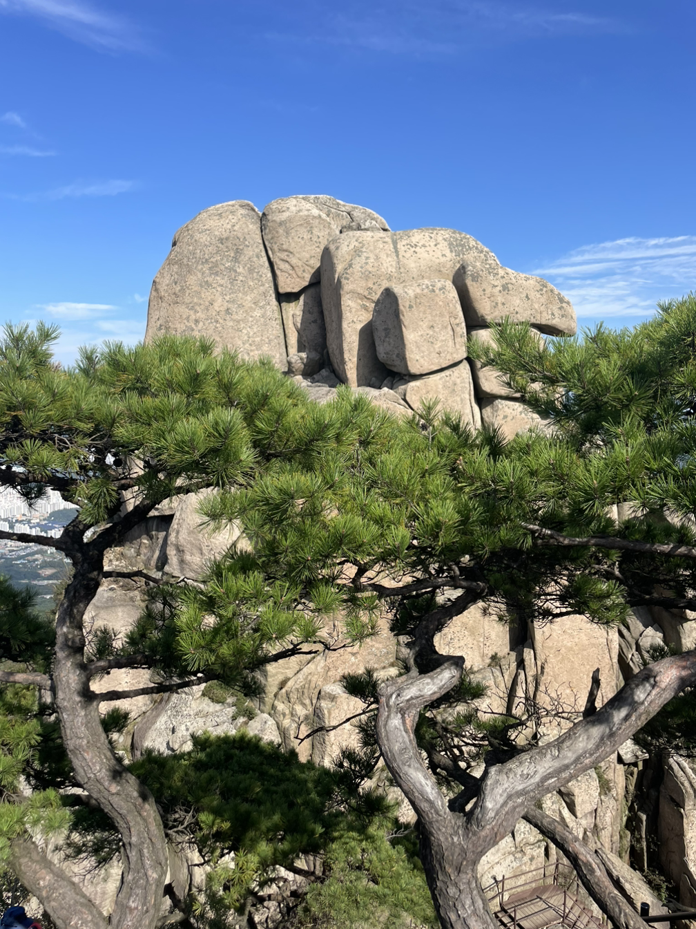 바위봉우리 한켠 수묵화처럼 은은히 보이는 산새가 품위 있고 신비롭다. 싱그러운 바람과 함께 그저 바라만 봐도 시간 가는 줄 모르겠다. 굳이 탁주 청주를 벗하지 않아도 충분히 취하고도 남을 멋진 전경이 넉넉히 펼쳐져있다.