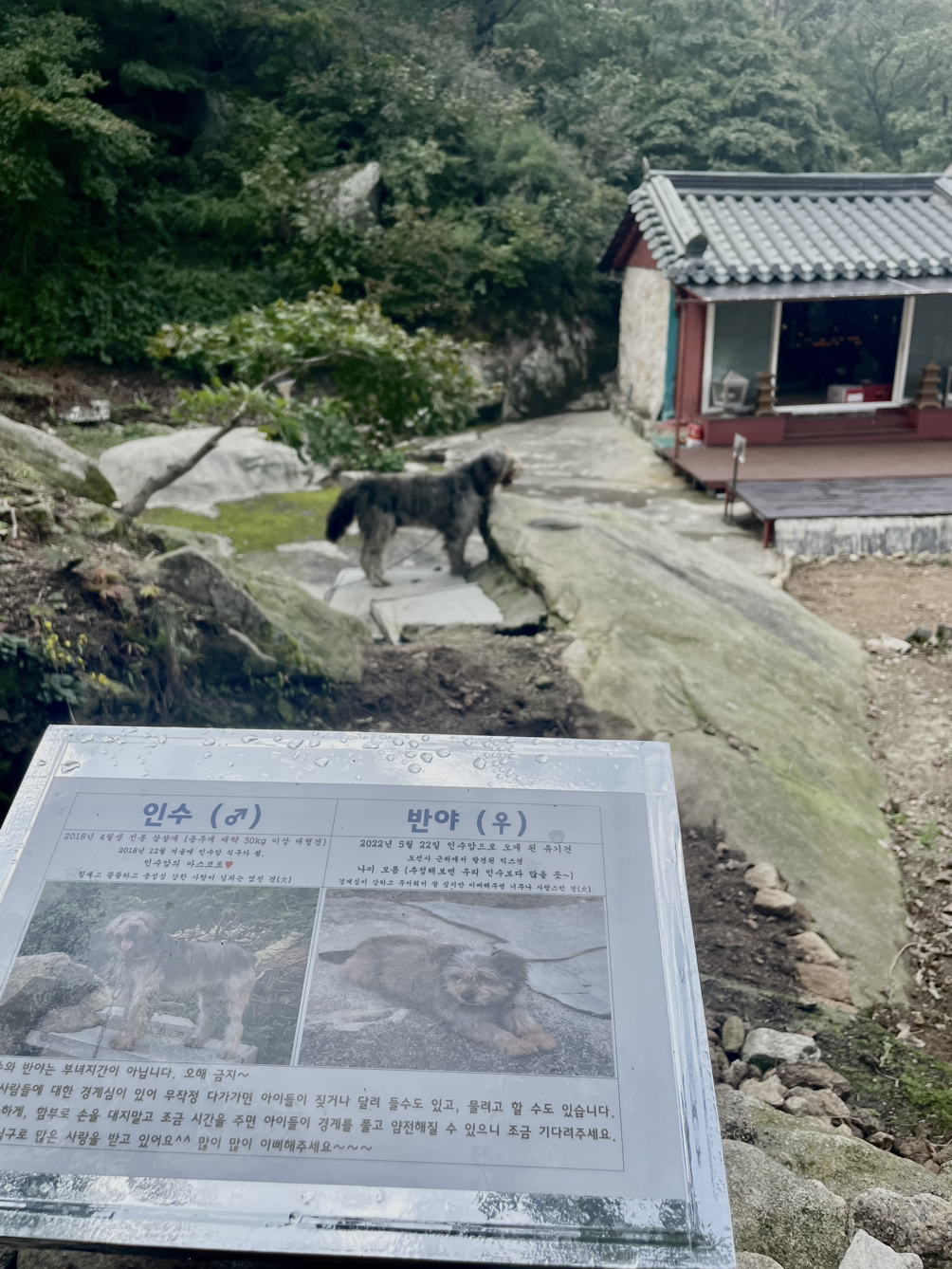 인수암 암자에서 키우는 삽살견들, 오가는 많은 등산객 곁에서 스님들이 수행하기 쉽지 않으실 듯하다.