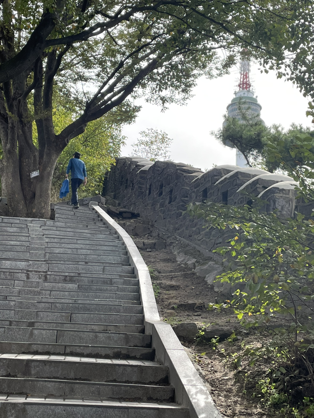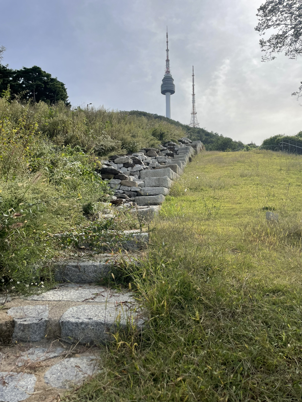 남산은 자주 가는 편이지만 유명해진 한양도성길을 좀처럼 따로 갈 기회가 없어 벼르던 참에, 이번 한글날 연휴기간에 탐방해 보기로 했다. 적절한 시작지점이 백범광장이 좋을 것 같아 광장 쪽에서 내려가보니 좀 더 아래쪽 힐튼호텔에서 성곽길이 시작되는 게 보인다. 아쉽다고 다시 내려갔다 오르는 건 아닌 듯싶어 이쯤에서 출발하는 걸로 타협했다.
