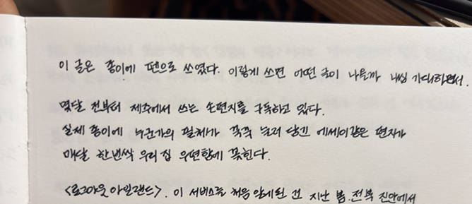 AI로 쉽게 요약하고 유튜브로 간접경험하는 게 익숙해서 ‘멸종 위기 경험’이 하나 둘 생겨나는 요즈음, 손글씨를 읽는 경험 하나쯤은 두고두고 가져가도 좋지 않을까!