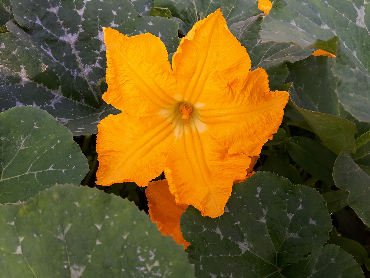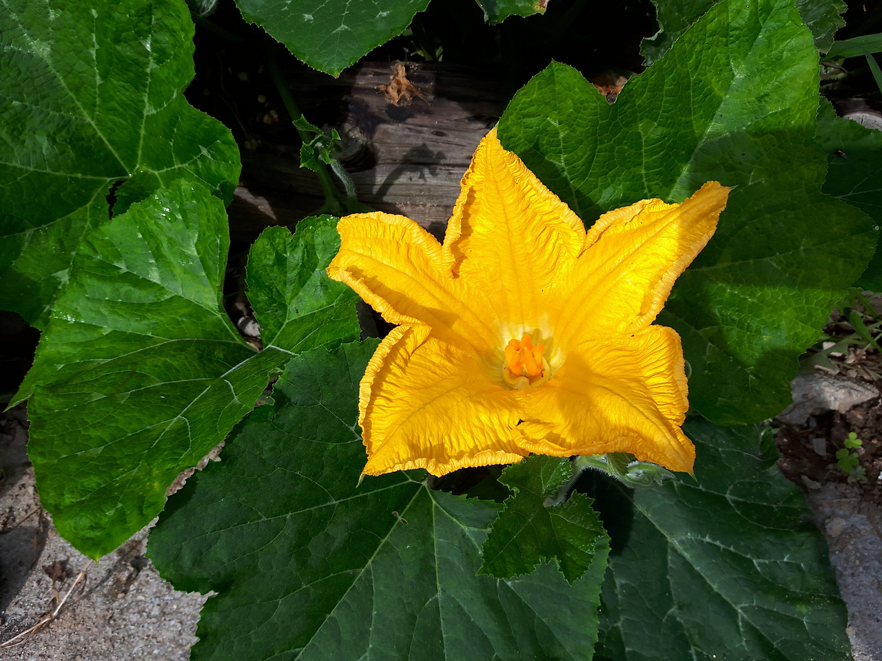 "호박꽃이 예뻐서요. 한데, 죄다 수꽃뿐이지 암꽃이 안 보이네요."