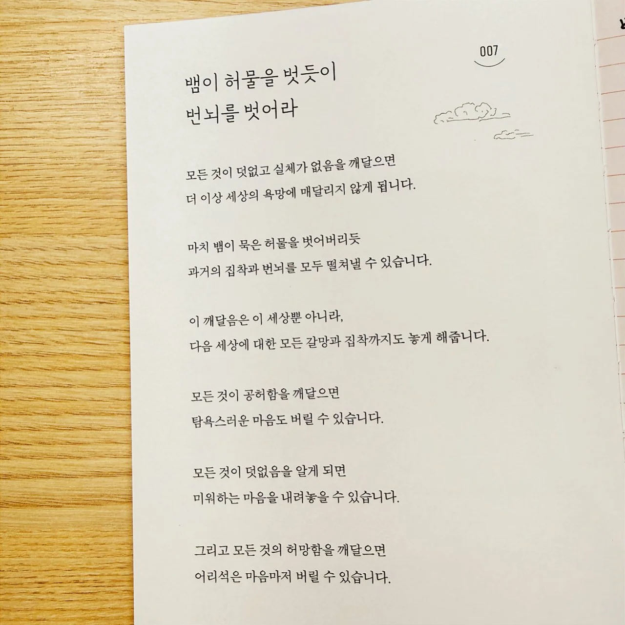 [뱀이 허물을 벗듯이 번뇌를 벗어라]