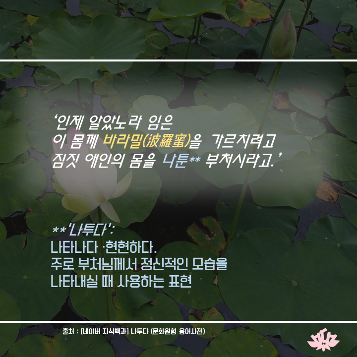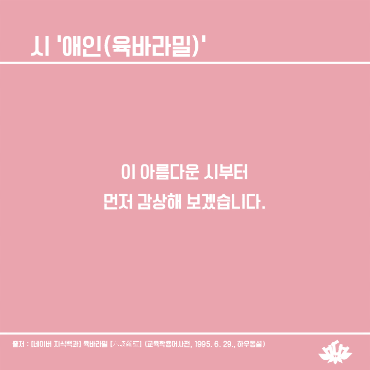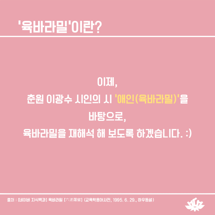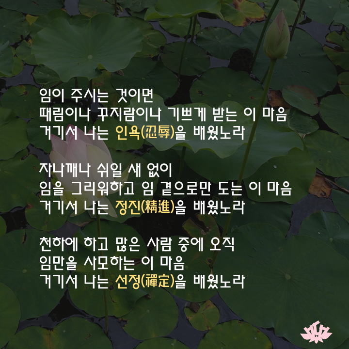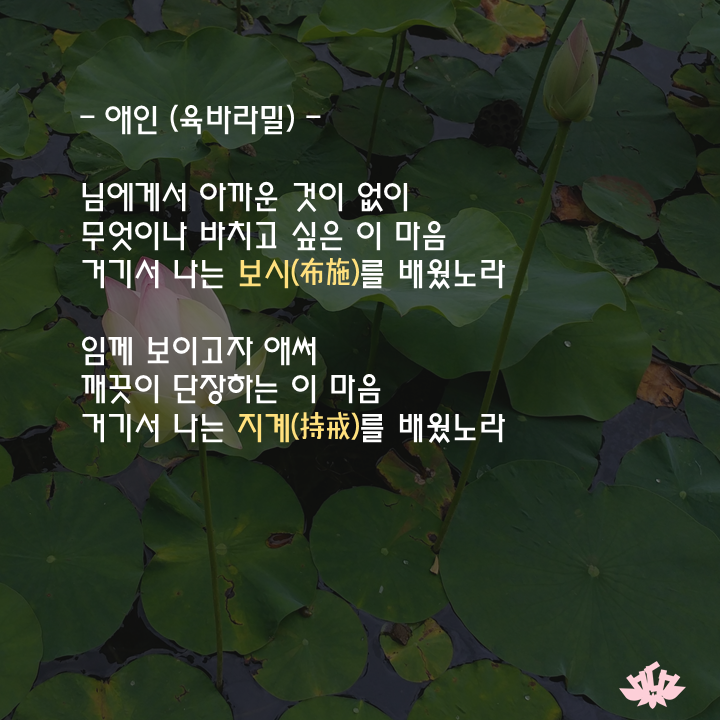 시인 이광수의 시 '애인'을 바탕으로 육바라밀을 재해석해 보는 유익한 시간이었답니다!