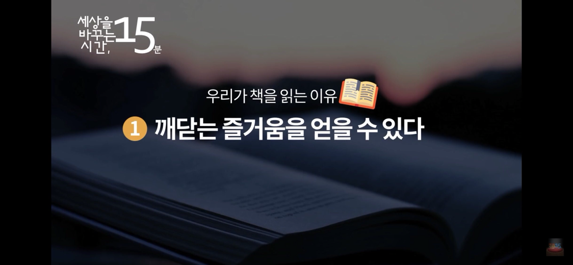 우리가 책을 읽어야 할 3가지 이유1.깨닫는 즐거움을 얻을 수 있다.2.말을 잘하고 글을 잘 쓸 수 있다.3.더 좋은 나와 세상을 만들 수 있다.