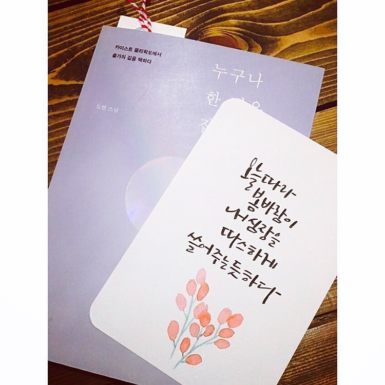 오늘따라 봄바람이 내 심장을 따스하게 쓸어 주는 듯하다. 봄은 모든 사람들이 소망을 품게 하고 새 희망을 노래하게 한다. 봄이 다 가기 전에 마음껏 꿈꾸고 넉넉한 가슴으로 주변 사람들 을 포근하게 살펴야겠다._#누구나한번은집을떠난다 #도연스님 #판미동