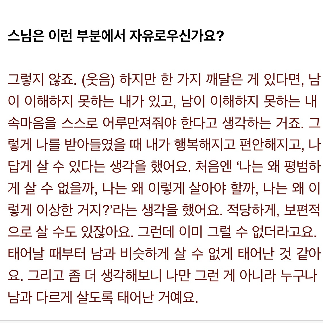 Q)스님은 이런 부분에서 자유로우신가요?
