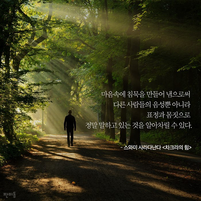 #책속한줄마음속에 침묵을 만들어 냄으로써 다른 사람들의 음성뿐 아니라 표정과 몸짓으로 정말 말하고 있는 것을 알아차릴 수 있다. -스와미 사라다난다 <#차크라의힘>…#판미동 #북스타그램 #책스타그램 #좋은글 #명언 #차크라 #차크라의힘 #books #스와미사라다난다 #침묵 #표정 #말 #대화