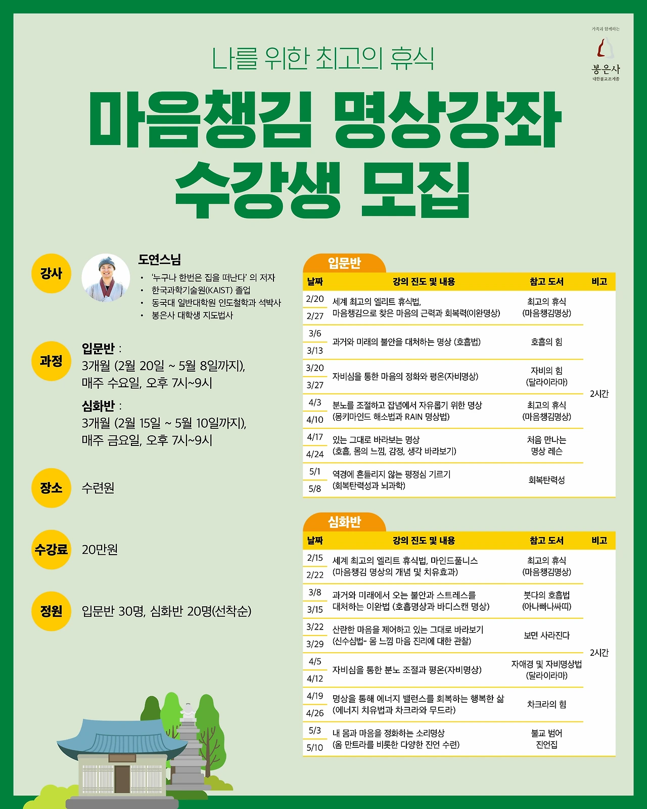 #마음챙김 #명상 시즌이 돌아왔습니다.#봉은사에서 #도연스님금요반은 2.15 부터수요반은 2.20 부터새해를 명상으로 열어보세요^^