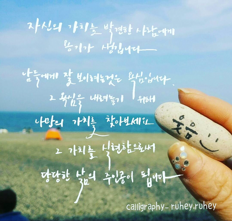 “자신의 가치를 발견한 사람에게 용기가 생깁니다.” 자신감과 자존감은 다릅니다.자신감이 다른 사람들의 인정과 외적 목표의 성취로 인해 채워지는 것이라면, 자존감은 스스로 나의 가치를 발견하고 존중해 주는 상태에서 발현됩니다. 남들에게 잘 보이려는 것은 욕심입니다. 그 욕심을 내려놓기 위해 나만의 가치를 찾아보세요. 그 가치를 실현함으로써 당당한 삶의 주인공이 됩니다.