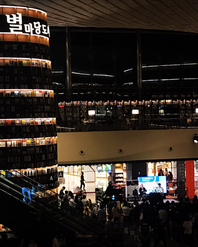 강남 봉은사 스님의 흔한 일상. .우리집 #봉은사 앞 #코엑스 에 포행나오면 들리게 되는 곳. .#영풍문고 그리고 #별마당도서관 !오늘은 세계적인 지휘자 #금난새 님의 강연회가 있었다. 그냥 사람구경하는 재미가 있습니다^_^