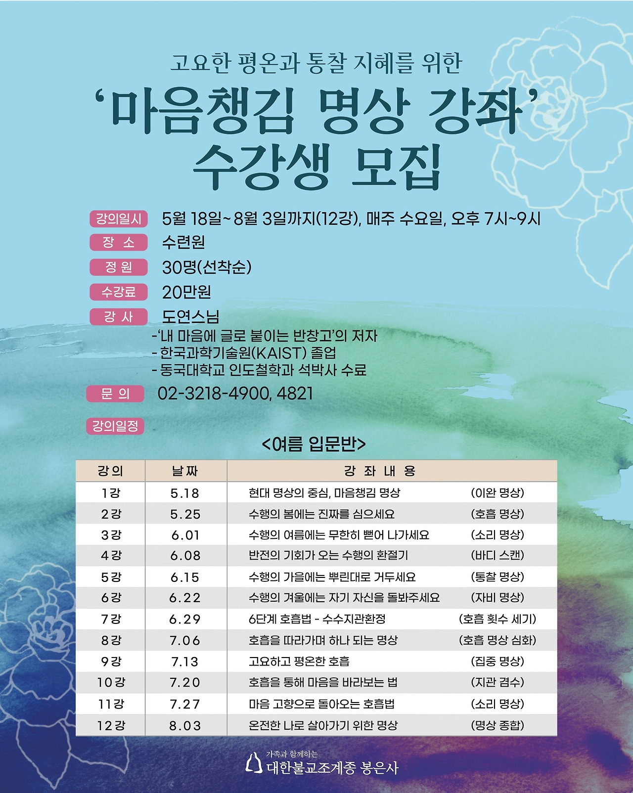 2년만에 다시 명상 프로그램 오픈합니다.