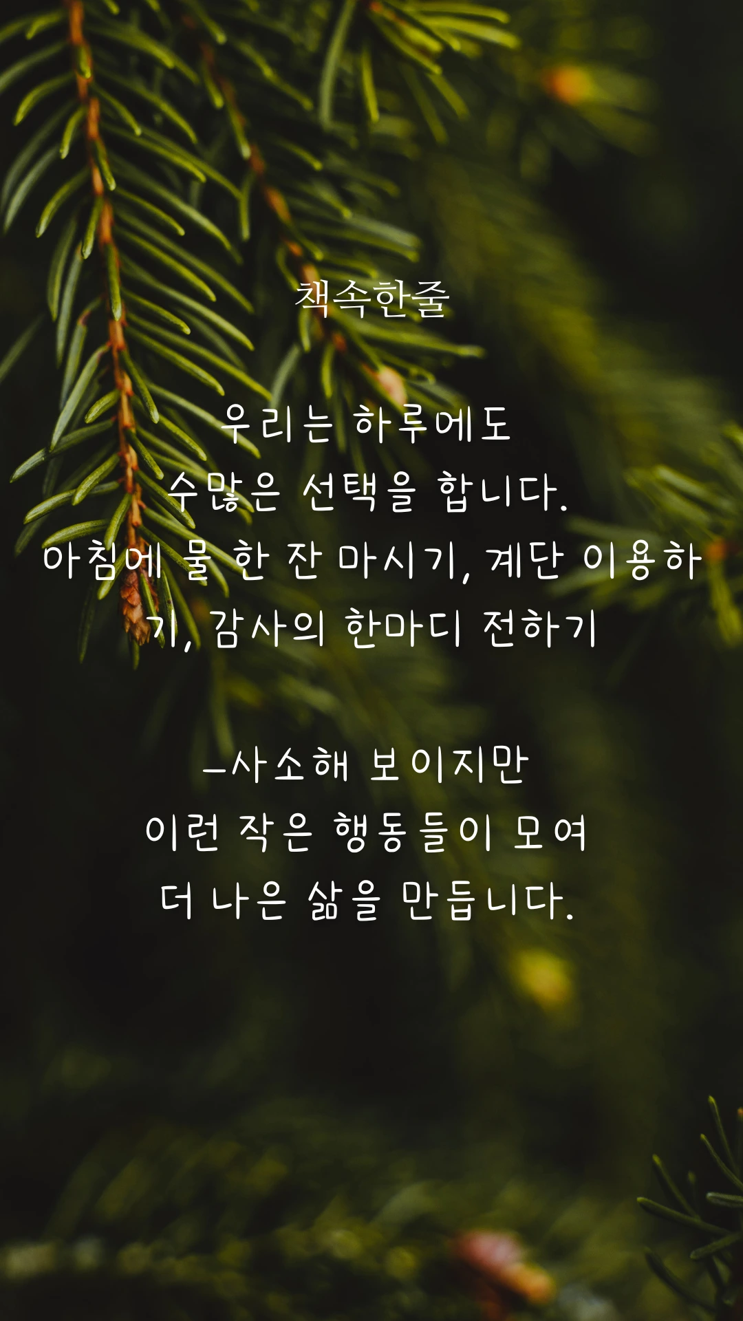 우리는 하루에도 수많은 선택을 합니다. 아침에 물 한 잔 마시기, 계단 이용하기, 감사의 한마디 전하기—사소해 보이지만 이런 작은 행동들이 모여 더 나은 삶을 만듭니다.