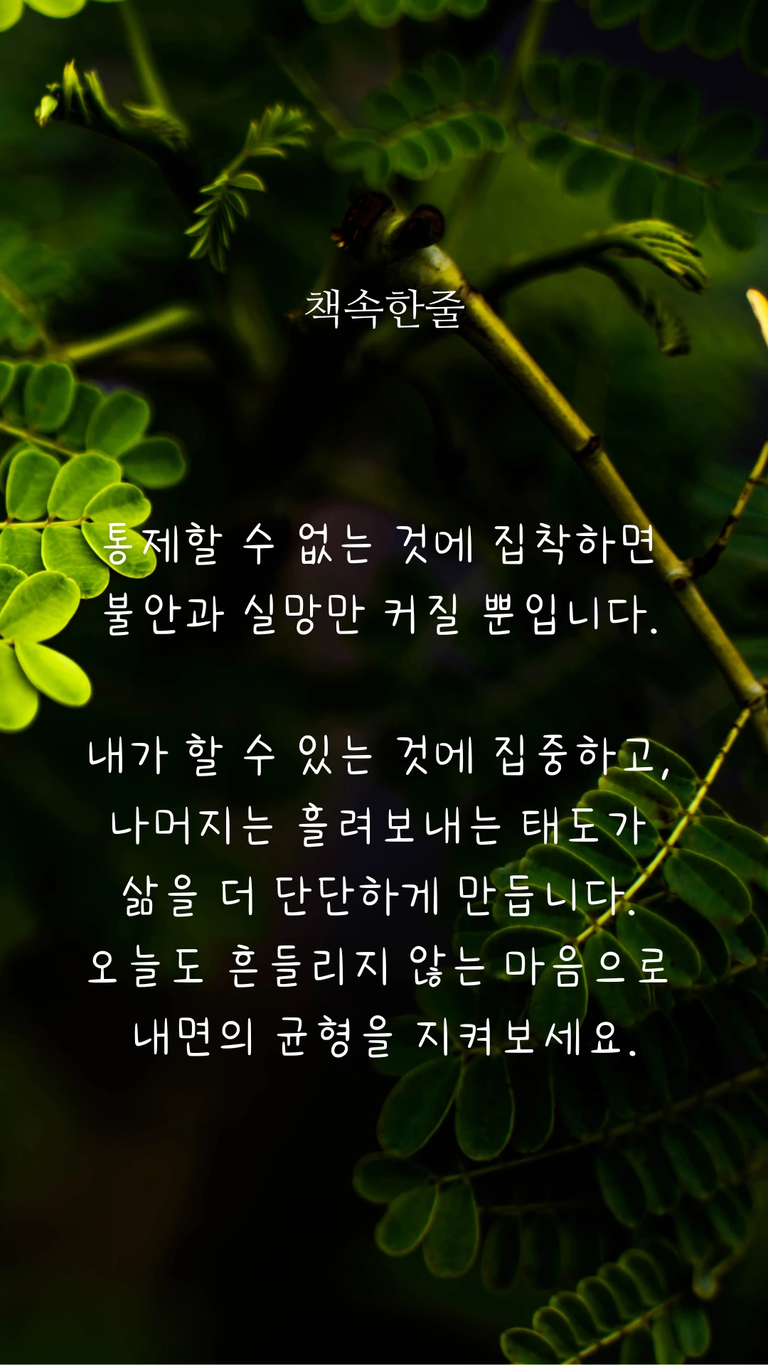 오늘도 흔들리지 않는 마음으로 내면의 균형을 지켜보세요.