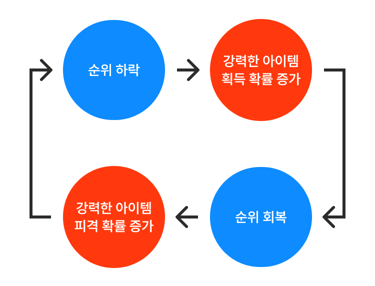 게임이 시작됐는데, 스타트가 좋지 않다. 8명 중 8등으로 트랙을 달리기 시작한다. 만약 이런 상황에서 8등 플레이어가 1등 플레이어를 영영 따라잡을 수 없도록 게임 시스템이 구성되어있다면, 게임은 더 이상 흥미진진해지지 않는다. 반전을 기대할 수 없는 상황에서 남은 트랙을 꾸역꾸역 달리는 것만큼 지루한 일이 없을 것이다.