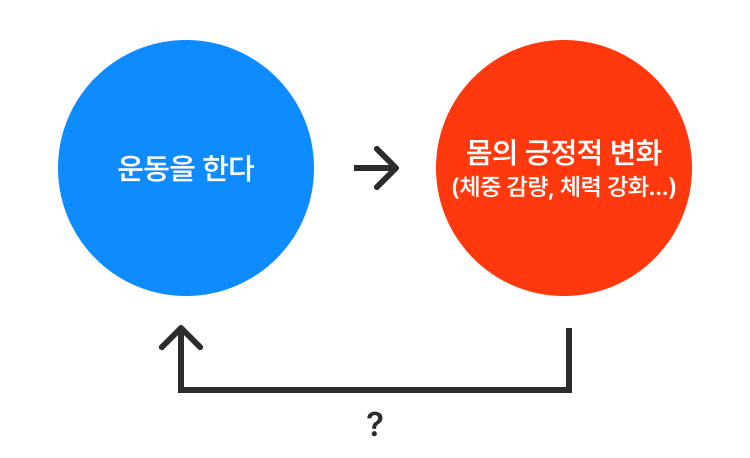 대신 이러한 피드백은 '운동을 한다'라는 원인에는 확실하게 영향을 미친다. 그렇게 운동을 지속하는 기간이 길어지면, 몸에 긍정적인 변화를 일으킬 수밖에 없다.