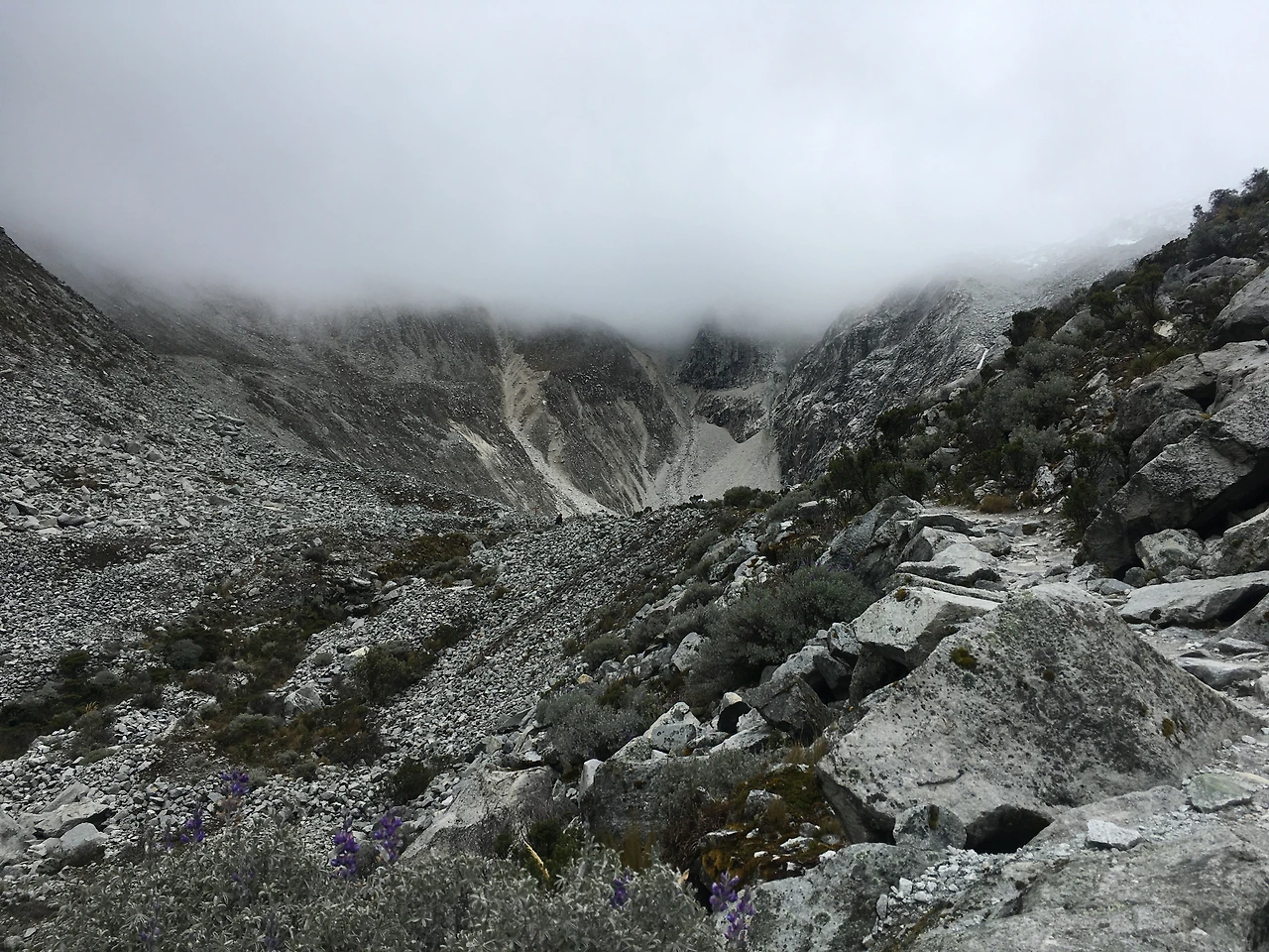 다음날 새벽 5시에 출발한 버스는 8시가 조금 넘어서야 우리를 내려주었다. 내리자마자 보이는 풍경은 파론호수와 너무 달랐다. 우리를 맞이한 건 아름다운 호수가 아닌 높이 솟은 거대한 산맥들과 어디까지 이어졌는지 알 수 없는 광활한 평지였다. 거기다 금방이라도 비가 쏟아질듯한 우중충한 날씨는 그곳을 반지의 제왕의 중간계로 만들기에 충분했다. 살짝 겁을 먹고 시작했지만 약간 숨이 찬 걸 제외하고는 일반 평지를 걷는 것과 다르지 않았다. 역시 고산병 따위는 내게 별거 아닌 것만 같았다. 즐거운 마음으로 동행들과 수다를 떨며 함께 노래를 부르기도 하면서 목적지를 향해 나아갔다.