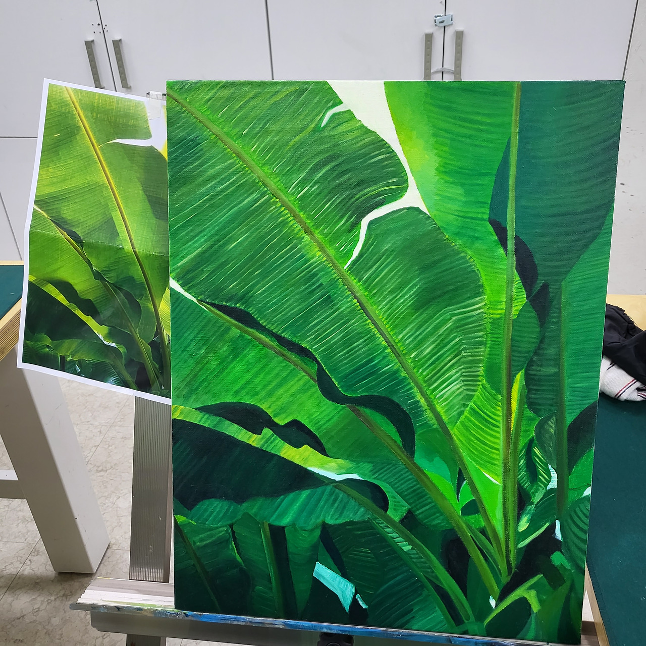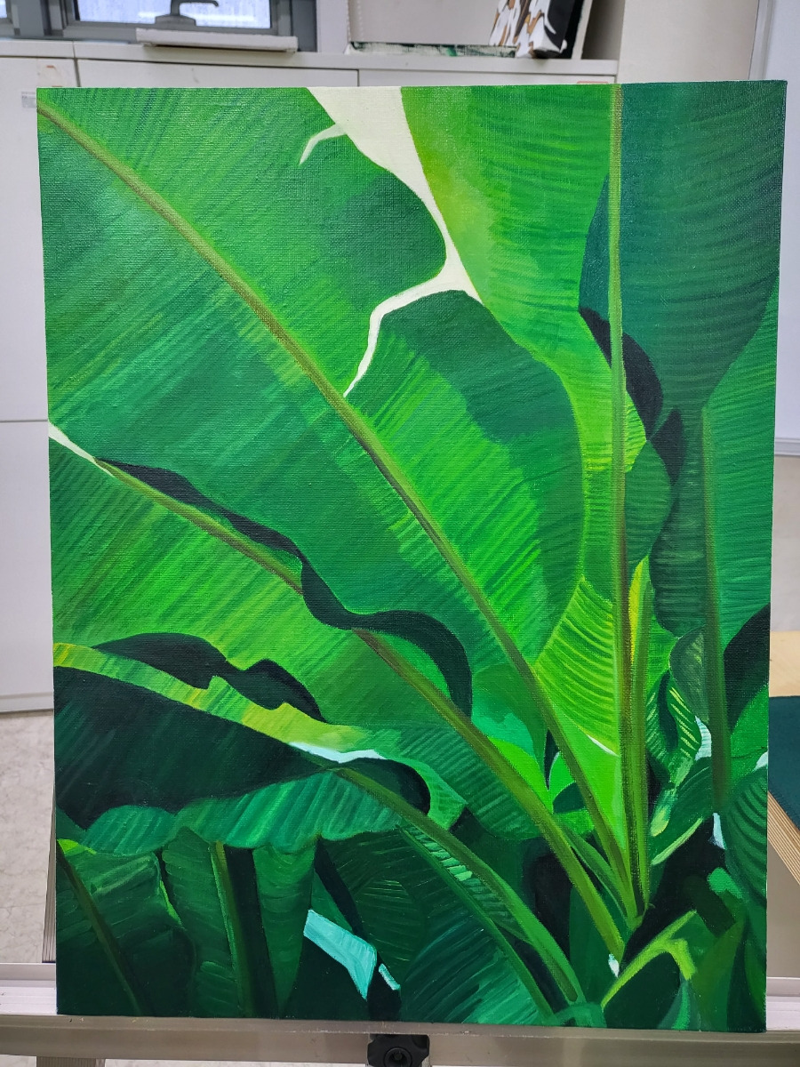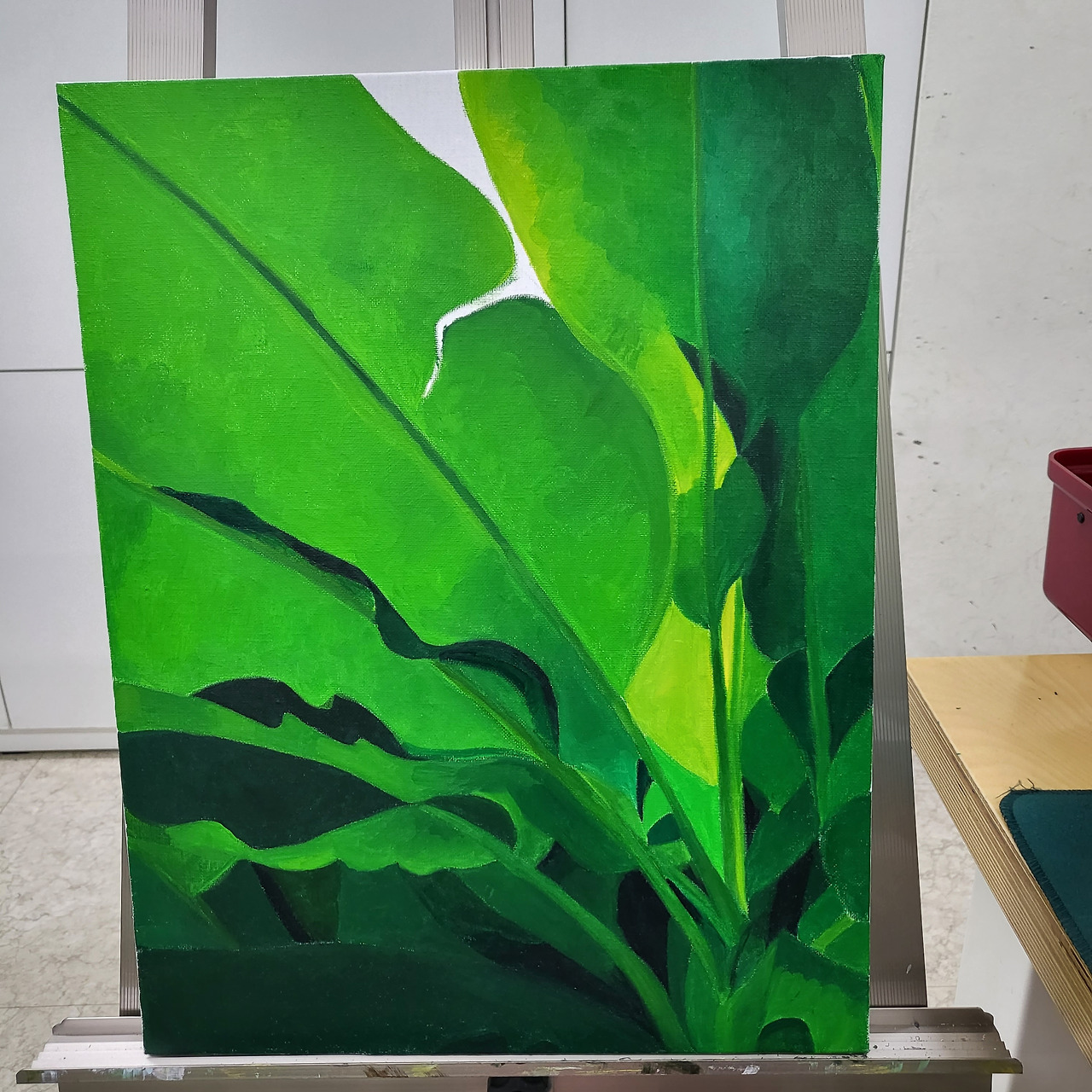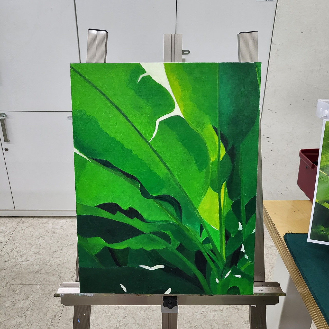 선생님은 오늘 세밀한 잎맥 2개 정도 이렇게 작업을 해보라고 지시했다. 정말 잎맥을 그리기가 여간 힘든 것이 아니다. 내 스타일이나 느낌대로라면 사실 더 투박하고 모질러(?)보이게 뚝뚝 끊어서 색을 표현하고 이쯤에서 마무리했을지도 모르겠다. 그러나 나는 지금 배우는 중이니까, 어느 정도까지 완성도가 올라가는지 보고 싶다. 꼼꼼함을 요구해도 너무 지나친 것 같을 정도의 나의 성질 벽을 뛰어넘는 작업이라는 생각이다. (지금까지도 그랬다고 생각했는데 more and more...)
