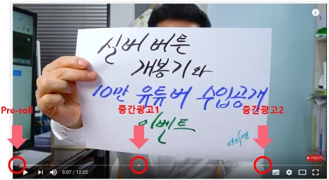 수익모델은 단순합니다. 동영상이 시작하기 전에 혹은 중간에 광고를 넣는 것입니다. 12분짜리 영상에 광고가 3개나 들어가 있습니다. 중간 광고는 보통 디스플레이 형태로 노출되지만, 동영상 시청 시간이 비교적 길 때는 동영상 형태로 노출되기도 합니다. 즉, 영상 시간이 길수록 광고를 노출할 기회도 늘어납니다. 자연스럽게 버는 돈도 많아집니다.