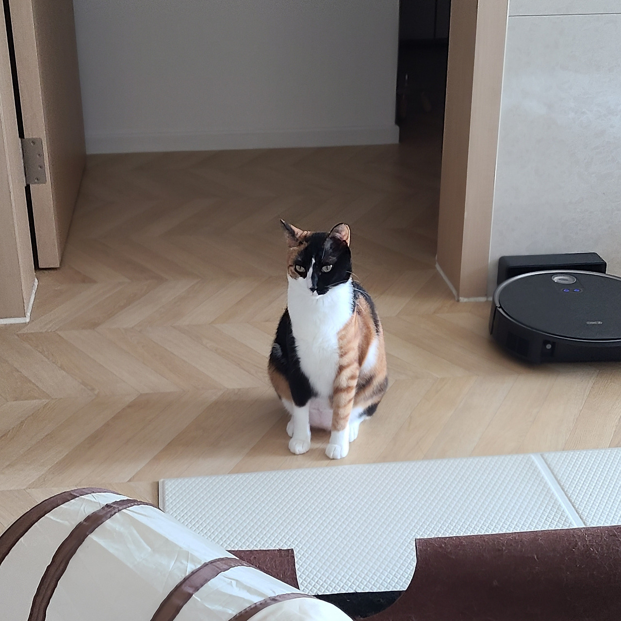리지는 우리 집에서 언어 뿐 아니라, 존재감도 지배한다. 단적으로, 이제 우리 집 방 중에서 리지의 물건이 없는 방은 없다. 현관문을 열고 들어오자마자 보이는 건 리지의 갑작스런 탈출을 막기 위해 설치한 하얀 방묘문이며, 거실엔 캣타워, 캣터널, 미끄럼 방지 매트, 이동장이 인테리어의 중심을 차지하고 있다. 안방 장롱 안과, 작은방의 리빙박스 안엔 색색의 고양이 장난감이 그득그득하다.