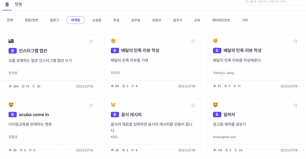 다른 사용자가 만든 AI 툴 활용 가능