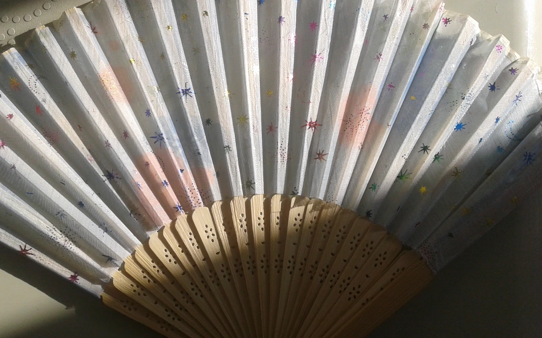 할머니가 주신 별이 가득한 부채를 만지작거린다.