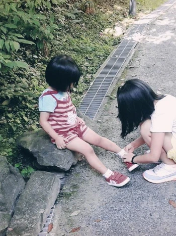 걷기에 지친 아이들을 달래어 숙소로 돌아왔을 때