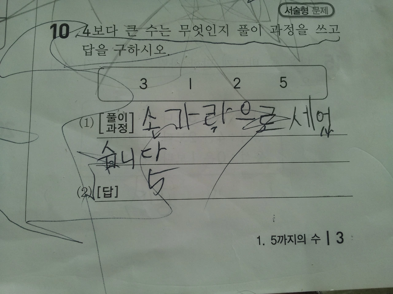 다음 수 중 다른 것의 기호를 쓰라는 물음에 "기호"를 몰라 빈칸으로 두고,