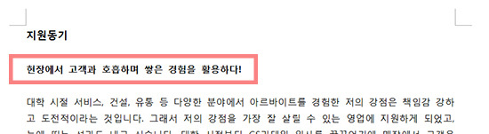 모든 글에는 제목이 달리게 됩니다. 제목은 그 글의 핵심 요지를 담고 있는 간결한 한 문장입니다.뉴스에서도 헤드라인을 통해서 기사를 읽게 만드는데, 자소서도 마찬가지입니다. 각 항목을 한 문장으로 정리하며 인사담당자들이 읽고 싶게 만드는 역할을 하는 것이 각각의 소제목들입니다.