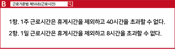 1항. 1주 근로시간은 휴게시간을 제외하고 40시간을 초과할 수 없다.