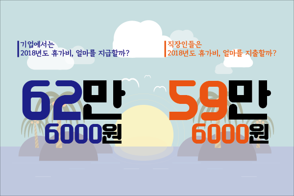 한 조사에 따르면 국내 기업들은 올해 평균 62만 6000원의 휴가비를 지급할 것이라고 하는데요. (한국경영자총협회, 5인 이상 기업 585개 조사) 실제로 2018년 직장인들은 여름휴가비용으로 59만 6000원을 지출할 예정이라고 합니다.