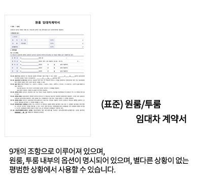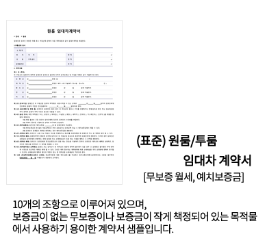 원룸/투룸 임대차 계약서(무보증 월세, 예치보증금) 양식 바로가기 ▶