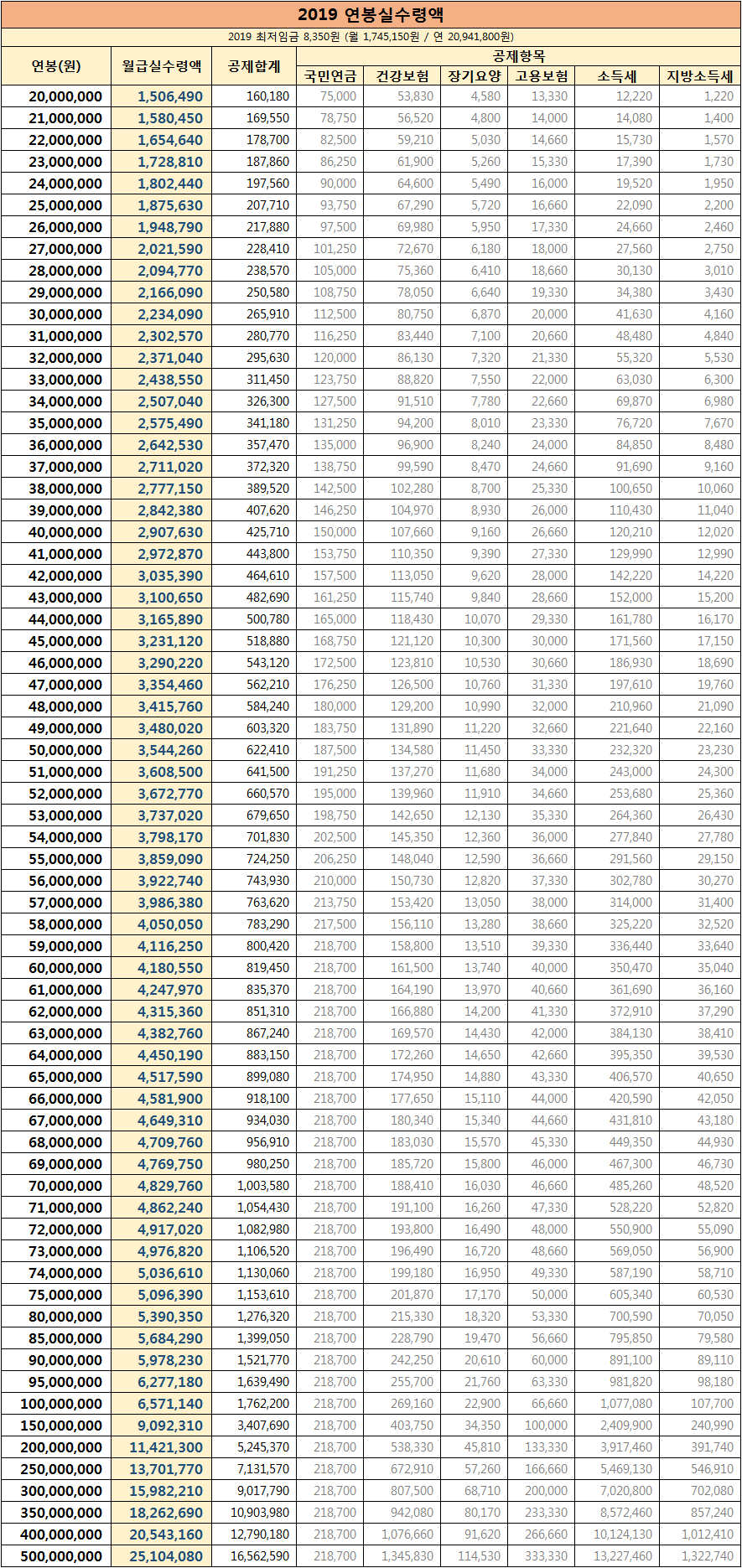 · 2019년부터 인상되는 건강보험, 장기요양보험, 고용보험요율을 적용한 계산입니다.