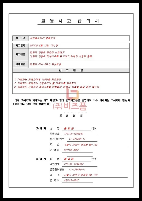 교통사고합의서의 작성요령