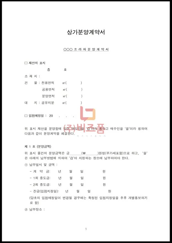 상가분양계약서 구성요소