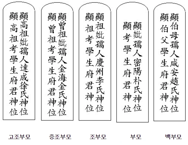 고조부모 : 현고조고학생부군신위 현고조비유인달성서씨신위