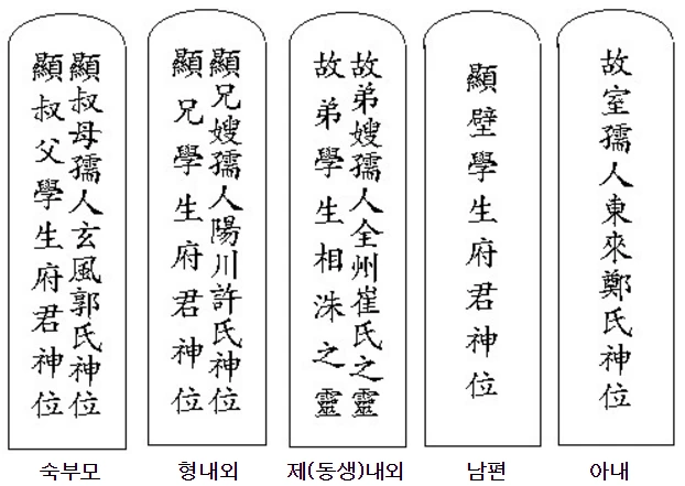부모 : 현고학생부군신위 현비유인밀양박씨신위