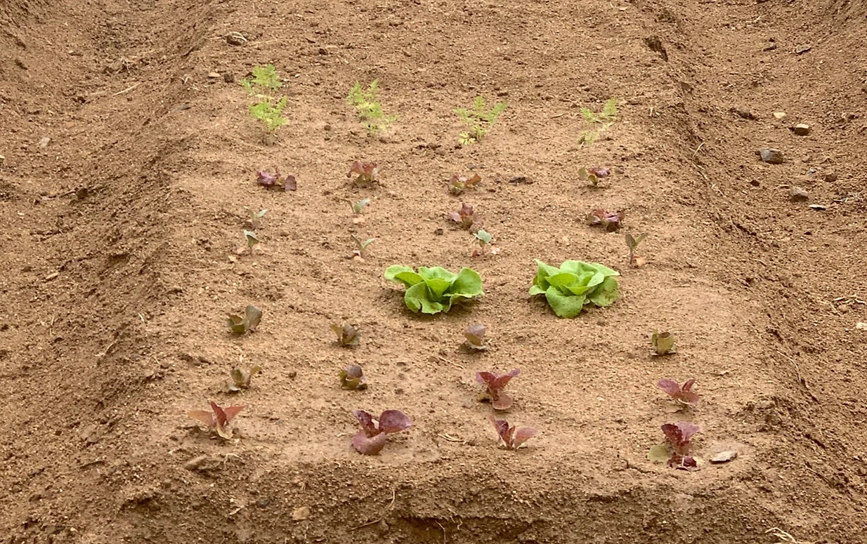 어머니, 아버지와 함께 모종을 심고 씨앗을 뿌렸다.