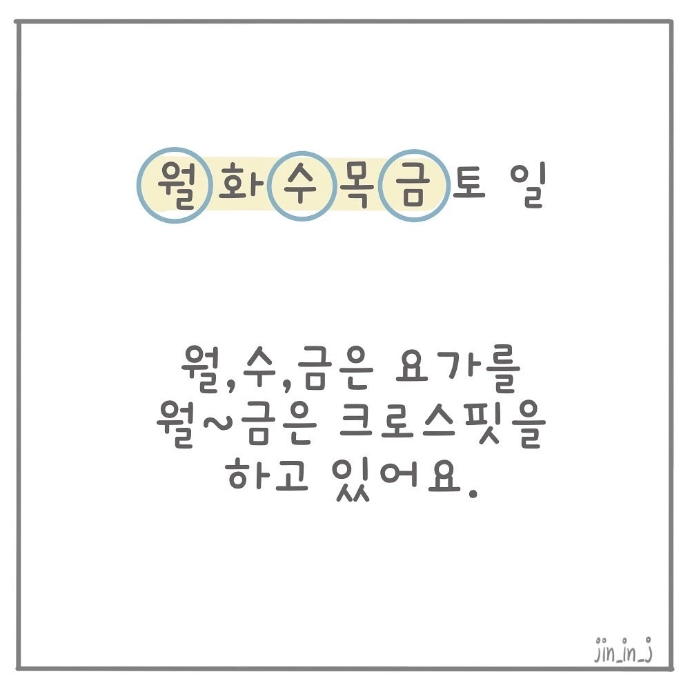 지난번에 요가에 대한 이야기를 했기 때문에, 이번엔 크로스핏 중심으로 그렸어요. 크로스핏은 근력운동을 정말 제대로 시켜준답니다!! 잡생각 많으신 분에게 추천해요.
