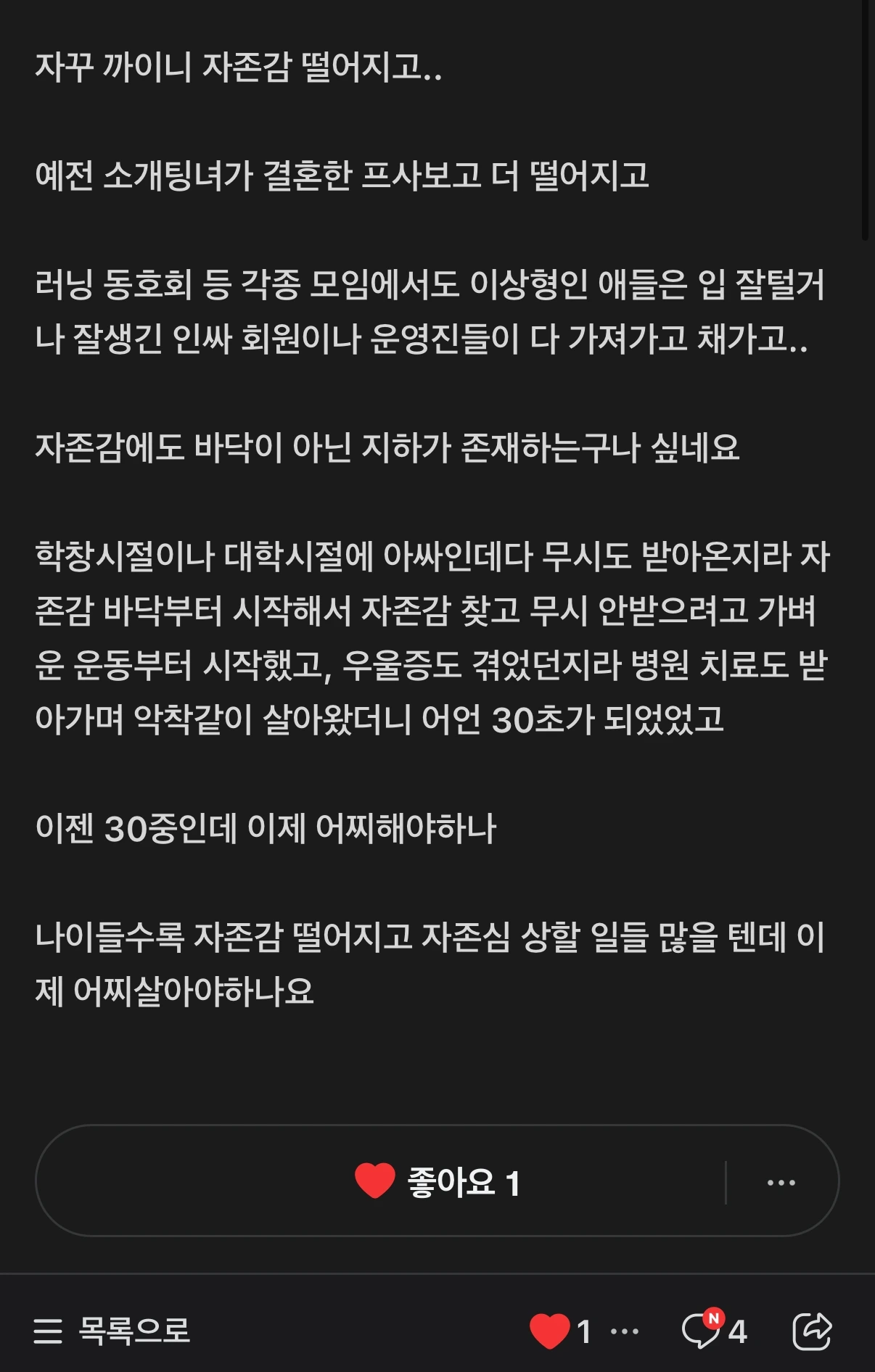자존감이 더 떨어졌습니다.”