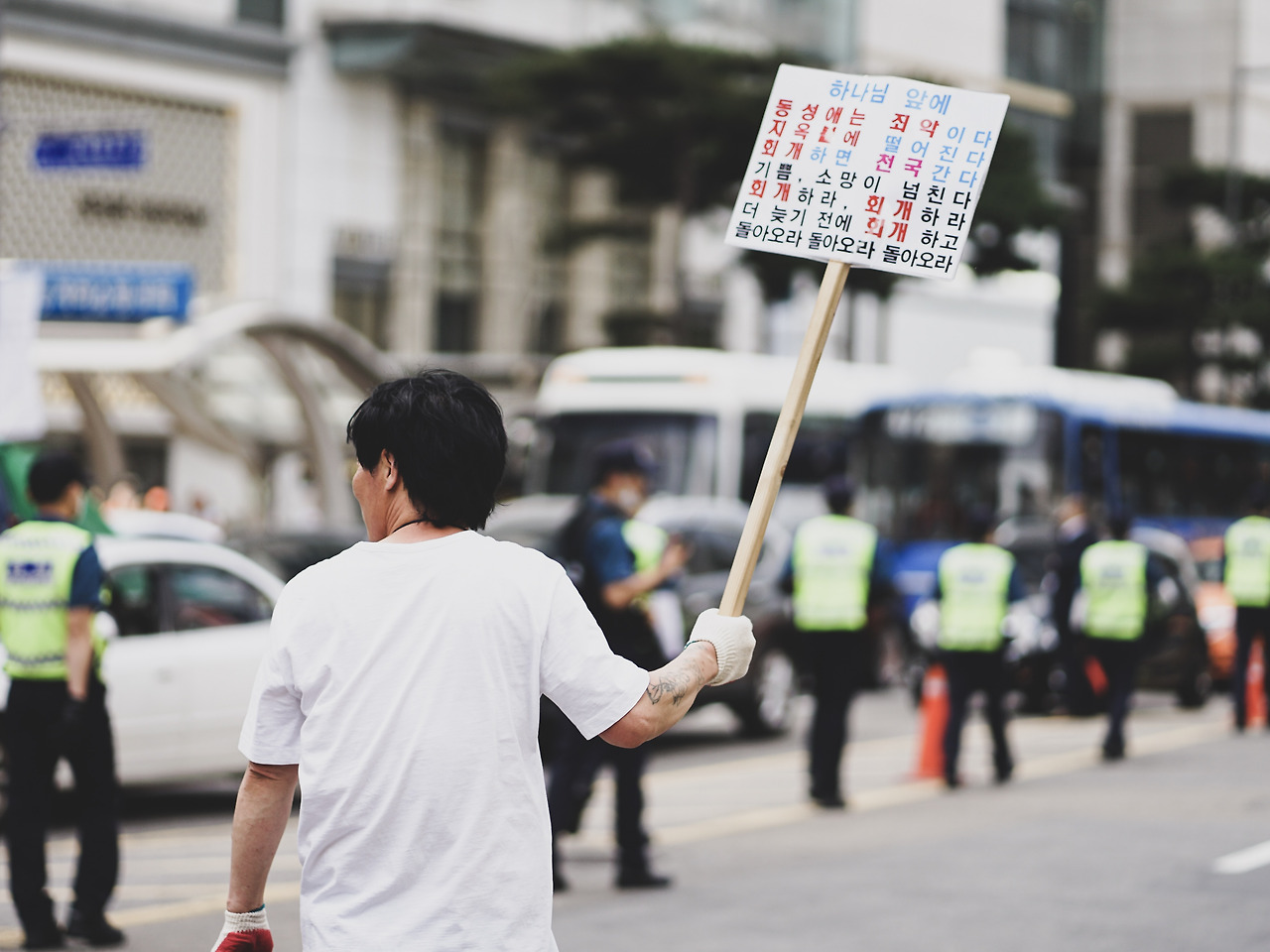 재작년, 취재차 퀴어문화축제에 다녀왔다. 4.5km 길이의 퍼레이드도 함께했다. "Homosexuality is sin"이라는 문구가 쓰인 피켓을 들고 트럭 앞에 뛰어드는 중년의 남성들도 어김없이 마주했다. 반대쪽도 둘러보듯 들렀다. 개독 소리 듣다 지쳤는지, '동성애퀴어문화축제반대국민대회' 측은 기독교색을 지우려 안간힘이었다. 으레 통성기도와 설교로 시작하던 집회는 공연과 강연으로 대체됐다. 물론 이름만 바꾼 설교 비스름한 것들이었지만.