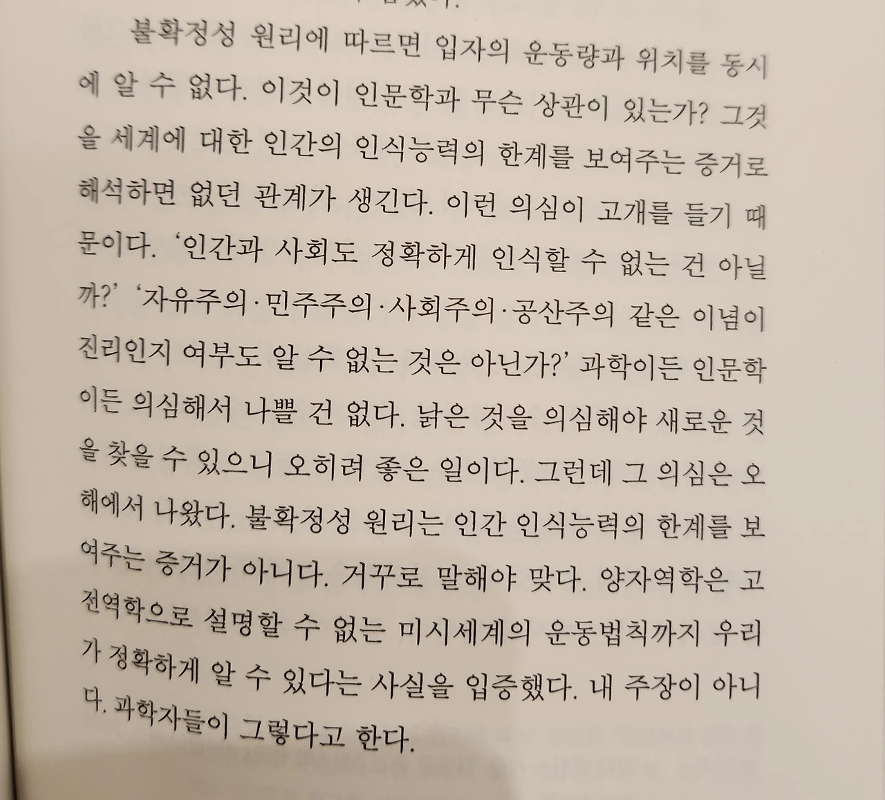 믿고 읽는 유시민 작가의 책이니 전체적인 소개는 생략하도록 한다. 기억에 남는 구절이 있었는데, 양자역학에 대해 설명한 내용 중 아래와 같은 내용이 있다.