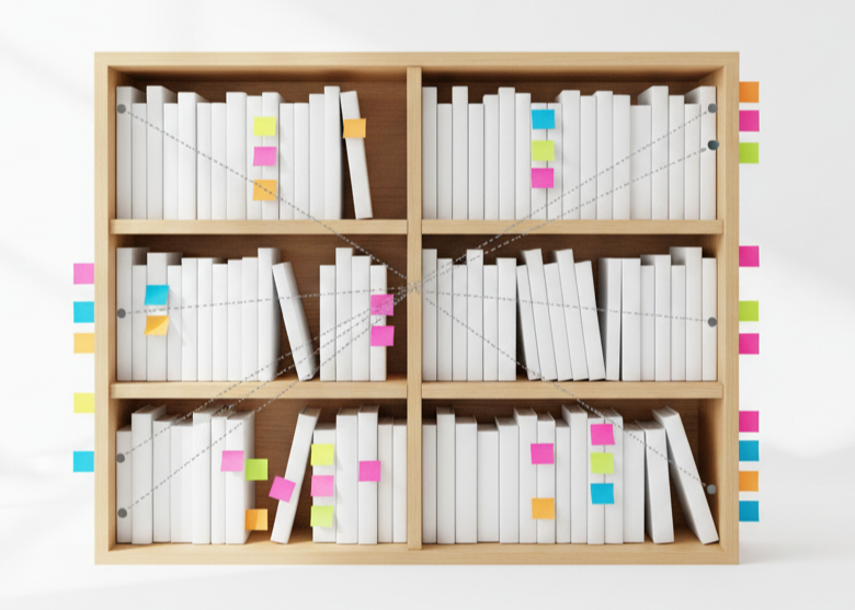 집 안에 있는 책들만 책장에 꽂아두고 “AI야, 이 책장 안에서 찾아줘.”라고 말하는 것과 같습니다. 책장은 한 번 정리해 놓으면 그대로인데, 새 책이 들어오려면 직접 넣어줘야 합니다. 비유하자면 내가 책장에 있는 모든 책, 모든 페이지를 직접 훑어서 중요한 부분에 ‘포스트잇’을 붙여가며 분류, 정리해 둔 상태로, 이후 AI는 이 포스트잇을 보고 빠르게 필요한 문장을 찾아내는 것이죠.