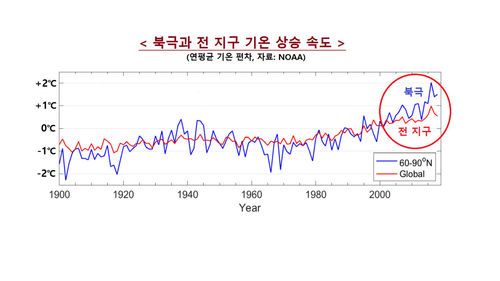 극지방은 타 지역 대비 보다 빠른 속도(2-4배)로 따듯해진다고 한다.