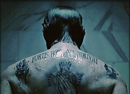 라틴어로 대담한 자에게 행운이 따른다는 뜻이다. 영어로는 Fortune Favors the Bold. 영화 <존 윅> 주인공의 등에 새겨진 문신이기도 하다.