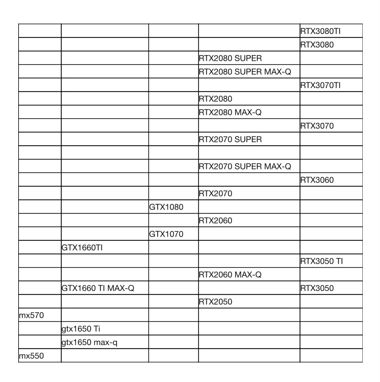 더 많은 종류가 있었지만 대부분 엔비디아 모델이고, 이름은 위 5가지 형태를 크게 벗어나지 않았습니다.