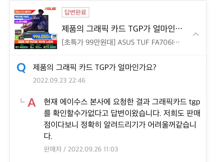 제품 판매 사이트에는 TGP가 명시되지 않은 경우가 많고 명시되어도 TGP에 따른 그래픽 카드 간 우열도 알 수 없습니다.