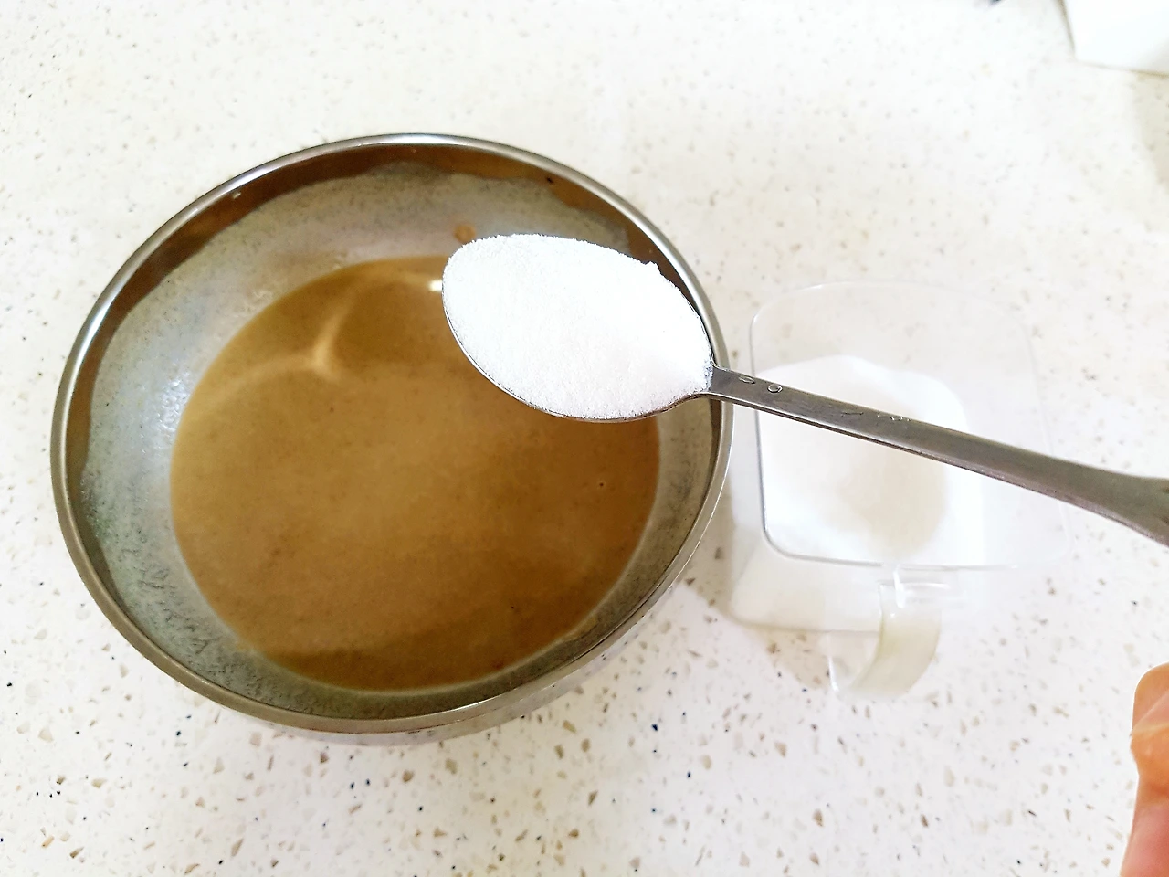 여름날 한낮의 백사장 모래처럼 눈 부시게 새하얀 설탕을 듬뿍 퍼넣고 쇠숟가락으로 휙휙 저으면 양재기 바닥에 깔린 설탕과 숟가락이 부비며 내는 소리.