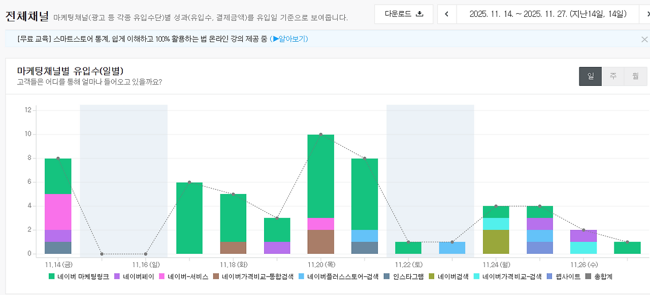 이번 편에서는 네이버 스마트스토어 운영 대시보드 중 "마케팅 채널별 유입"에 대해 이야기해본다.