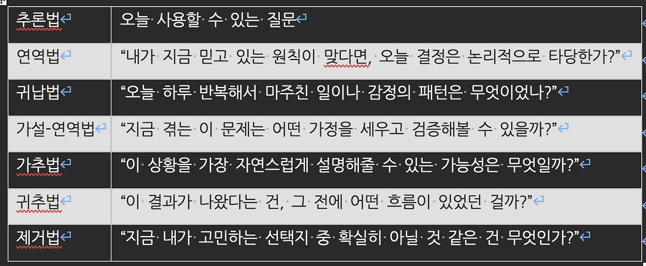 • 오늘 내가 내린 결론이 진짜 논리적으로 타당한가?