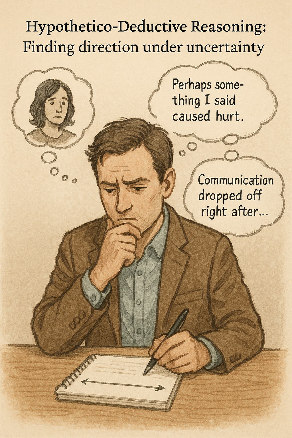 A friend keeps postponing plans and suddenly goes quiet. Hypothesis: “Perhaps something I said caused hurt.” If so, a likely observation would be: “Communication dropped off right after our last conversation.” Now check timelines and emotional cues, and seek a resolution consistent with the facts.